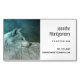 Magnetic business card with a photograph of a gorgeous furry fluffy grey wolf. In the background is a dark forest with trees. Magical mystical vibe.
