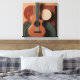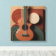 Soft pastel taupe background with a central acoustic guitar in blush pink, muted lavender, and subtle gold accents. Flowing 3D geometric shapes, Scandinavian boho minimal style, soft ambient shadows. Ready-to-hang canvas print for modern interiors.