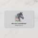 Business cards with a beautiful illustration of a black horse head with a fancy floral embellishment by it's neck. Elegant and classy animal painting.