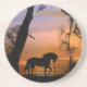 A pretty coaster with a horse, country fence and oak tree in a southwestern sunrise.