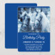 Birthday party invitation with a photograph of a pair of horses hitched together. A snowy day and a blue filter creates a magical photo.