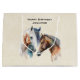 Gift bag with a beautiful watercolor drawing. Featuring a pair of horses, brown and white. Head and neck visible with dripping paint along the base of their neck. Southwestern vibe.