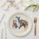 Paper plates with a beautiful watercolor drawing. Featuring a pair of horses, brown and white. Head and neck visible with dripping paint along the base of their neck. Southwestern vibe.