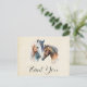 Thank You postcard with a beautiful watercolor drawing. Featuring a pair of horses, brown and white. Head and neck visible with dripping paint along the base of their neck. Southwestern vibe.