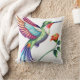 Colourful Hummingbird Hovers over Flower, Throw Pillow