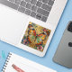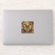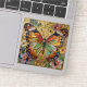 A pretty heart sticker with an illustration of a beautiful gold, teal and orange butterfly surrounded by yellow, white and purple flowers. It's done with an impasto style and just emanates beauty and grace.