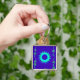 Beautiful Iridescent Blue Floral Art Oil Painting Key Ring