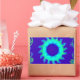 The "Beautiful Iridescent Blue Floral Art Oil Painting Art Print" is striking, vibrant, and evokes a mystical or celestial atmosphere. The contrast between the deep blue background and the iridescent blues and greens of the central motif creates an eye-catching visual impact. The simplicity of the design, paired with its bold colours, makes it a stunning addition to any space.