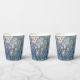 Elegant iridescent Lily of the Valley paper cups with Lovely Lily of the Valley floral. Background is beautiful shades of blue, purple pink, and lavender.