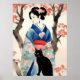 Beautiful Japanese Girl with a Black Cat Poster