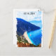 Stunning watercolor artwork on travel postcard that is showcasing a coastal view on the beautiful Greek travel destination of Kefalonia in the ionian sea. Colourful greek vacation souvenir for every tourist and fan of the popular travel destination in the Mediterranean Sea. Purchase now.