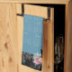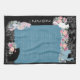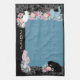 Cats in silhouette with vintage watercolor roses in dusty blue and pink, on black and orient blue, make a pretty floral garden 2022 calendar tea towel.