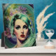 Check out this elegant beautiful portrait of a space woman with the universe as a backdrop and a lovely green halo around her head adorned with lavender flowers with a retro watercolour wash look. Makes a perfect gift!