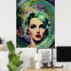 Beautiful Lavender & Green Retro Style Space Woman Poster