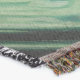 A quality printed throw has its advantages. This is a much finer weave throw than its loopier cousins, and though lighter, it is worth the investment for custom room accessorizing. The back is much prettier than the typical brown, and the fringe on the long sides very vivid, the selvage nicely done. Before photographing, I washed the throw in cold water, delicate, with a thicker woven throw the same size. On tumble dry low, this throw was dry in half the time as the other. This is a very practical quality if you use throws for furniture covers or to wrap up in frequently. The sleekness of the fabric makes it a great layer for accenting or protecting without the feeling of sitting on too much stuff. Perfect for napping or when you feel a light chill coming on. The color printing is beautiful and on this fabric, matched the design and color of my Photoshop image. This is an advantage for blending room fabrics and colors. The fringe on the short sides prints the colors from the design image and therefore varies from the side fringe. I streaked a white fractal line through the plaid pattern to give the illusion of weaving. This printed as crisp as an illusory thread, and put some white in the short side fringe, showing another advantage of print vs loomed- for artistic purposes, line lines, detail, and color integrity can be planned and preserved. My loomed throws have color limitations and more of a needlepoint texture. Print throws reproduce an exact image. The throw felt a little stiff straight out of the package, but this went away in the first delicate wash. Of course I searched the wash water for ink or bleeding and there was none.