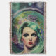 Check out this elegant beautiful portrait of a space woman with the universe as a backdrop and a lovely green halo around her head adorned with lavender flowers with a retro watercolour wash look. Makes a perfect gift!