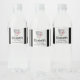 Event water bottle labels with a beautiful illustration featuring a grey, black and white leopard portrait. This lovely animal is surrounded by a tropical flower bouquet. Elegant, exotic and lovely.