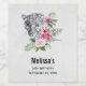 Bottle labels with a beautiful illustration featuring a grey, black and white leopard portrait. This lovely animal is surrounded by a tropical flower bouquet. Elegant, exotic and lovely.