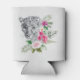 Can cooler with a beautiful illustration featuring a grey, black and white leopard portrait. This lovely animal is surrounded by a tropical flower bouquet. Elegant, exotic and lovely.