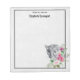 A notepad with a beautiful illustration featuring a grey, black and white leopard portrait. This lovely animal is surrounded by a tropical flower bouquet. Elegant, exotic and lovely.