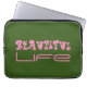The sleeve is made of nice feeling material and seems very durable. I'm not sure how easy it'll be to clean, but the construction seems sound and the fabric is quick thick. I also like the double zipper. The printing is lovely and appears durable. The white on black contrast is nice, and the design very elegant.