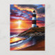Beautiful Lighthouse, Sunset and Ocean Waves Postcard
