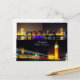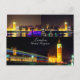 three photographs of London printed on a postcard, perfect to show all your friends and family where you have been, the first photograph in the top left is a picture of the London river in the foreground at night time and big ben in the Back ground, the second picture is a Night time photograph of the houses of parliament and Big ben, and the third picture across the bottom is of stunning light trails across a bridge towards princess Elizabeth tower AKA Big Ben.