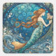 Beautiful Mermaid Art Nouveau Art Deco Style Blue Square Sticker