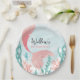 This beautiful mermaid birthday party round paper plates are the perfect way to enjoy cake and ice cream! Easily edit the wording with your event information. This design features a glittery watercolor mermaid tail splashing in the blue ocean. Perfect for your little mermaid!