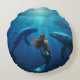 Beautiful Mermaid Swimming With Humpback Whales, Round Cushion