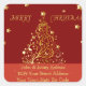 Beautiful metallic gold Christmas tree on dark red Square Sticker