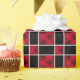 Beautiful modern square chequered gift wrapping paper. This gift wrapping paper in black, red and white colours is ideal for Christmas season.