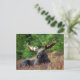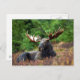 Beautiful moose with big antlers laying on the ground with green trees in the background. Great gift for your mother, father, sister, any other relative, loved person, yourself in birthday, anniversary, Christmas or any other special day.