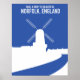 Beautiful Norfolk Windmill retro travel poster art print in blue.