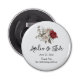 Bottle opener with a floral illustration. Beautiful cream and red roses gathered together in a bouquet with grey stems and leaves.