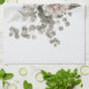 Kitchen towel with a floral illustration. Beautiful cream and red roses gathered together in a bouquet with grey stems and leaves.