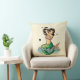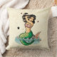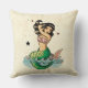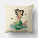 Lovely Mermaid on the rock. This amazing sea creature is luring travelling sailors of Seven Seas. Long black hair, ruby red lips and fit body. Don’t need to mention her stunning voice – she is one of the most tempting girls of the ocean. This old school mermaid pillow could be nice addition to the beach house.