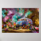 Beautiful old teal Combi van with colourful flower Poster