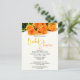 This vertical format bridal shower invitation features a bouquet of orange roses at the top front and top back. All shower details are on the front. Personalise the text in the template fields or click customise to select a typeface style, size, and colour you prefer.