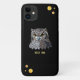 Beautiful owl and golden confetti on black iPhone 11 Case. Text can be personalised.