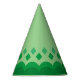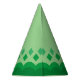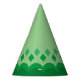 Beautiful patterned green birthday party hat featuring shades of light green, lime, spring, and forest. Perfect festive paper cone hat for a girl or boy's birthday party. Bright and cheerful pretty patterned festive celebration hat to bring joy to your event.