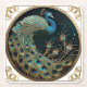 Gorgeous Art Deco peacock with beautiful turquoise and gold feathers, and gold filigree accents.