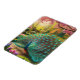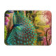"Step into a world of vibrant beauty with this mesmerising illustration of a peacock in a blooming garden. The majestic peacock, with its iridescent feathers fanned out in full display, stands as the centerpiece amidst a lush landscape of vivid pink cherry blossoms, colourful hydrangeas, and meticulously manicured greenery. The sunlight filters softly through the trees, enhancing the serene and magical atmosphere of this enchanting garden scene.