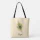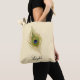 Beautiful peacock feather and calligraphy on ivory Tote Bag.