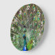 Closeup photo of a beautiful peacock displaying his tail clock with numbers.