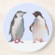 Beautiful Penguin Bird Couple on Light Blue Coaster