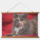 Beautiful Pet Cat Relaxing Against Red Background Hanging Tapestry