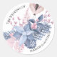 Beautiful Pink and Blue Christmas Floral Wedding Classic Round Sticker