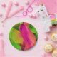 Beautiful Pink and Green Leafy Pattern Paper Plate