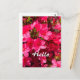 Beautiful closeup photo of pink azaleas is printed on custom postcards. The word Hello is written in white across the flowers, and the text can be customized with your own greeting. Thank you for shopping at CherylsArtPhotos on Zazzle.